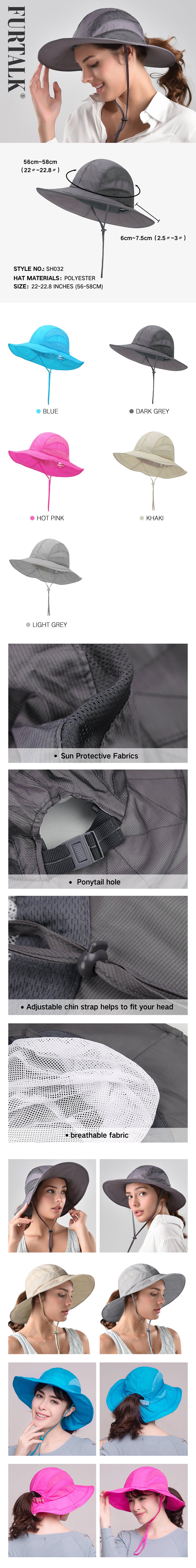 The women summer sun hat is made of polyester and quick dry, It is best for you in outdoor. When you hiking, You don't need to worry about strong wind. The elastic rope design avoids the hat drop out. and wide brim can help you stay away from the sun ray.