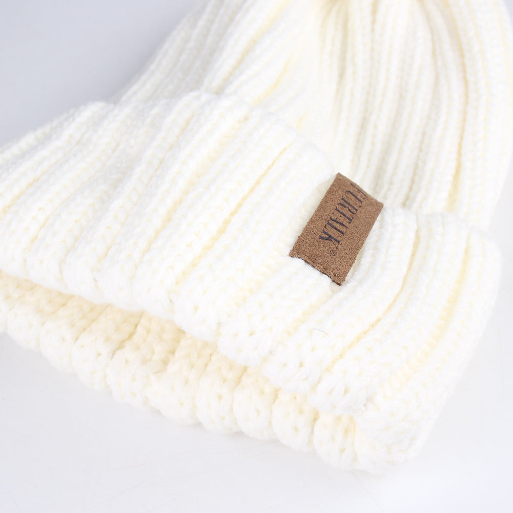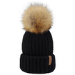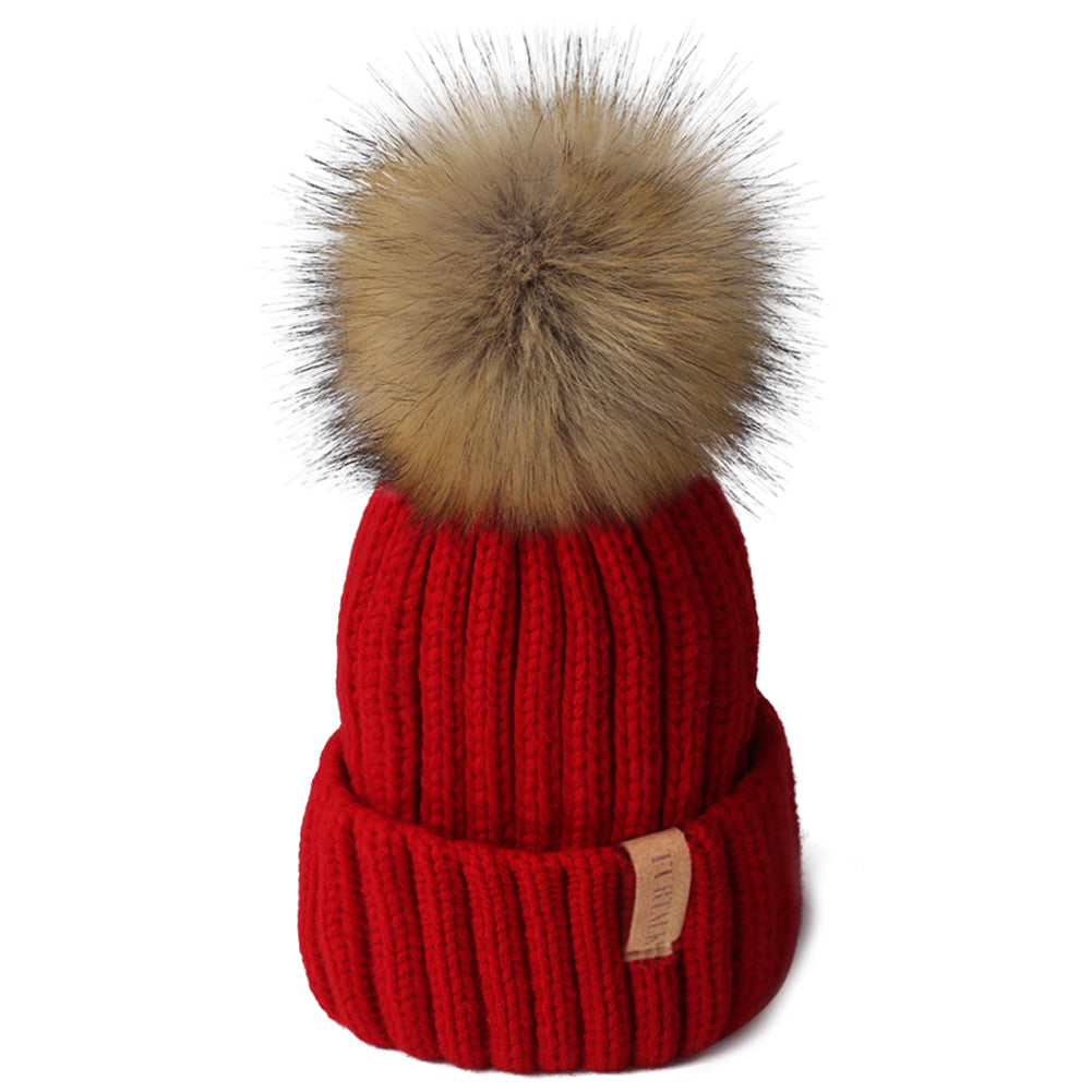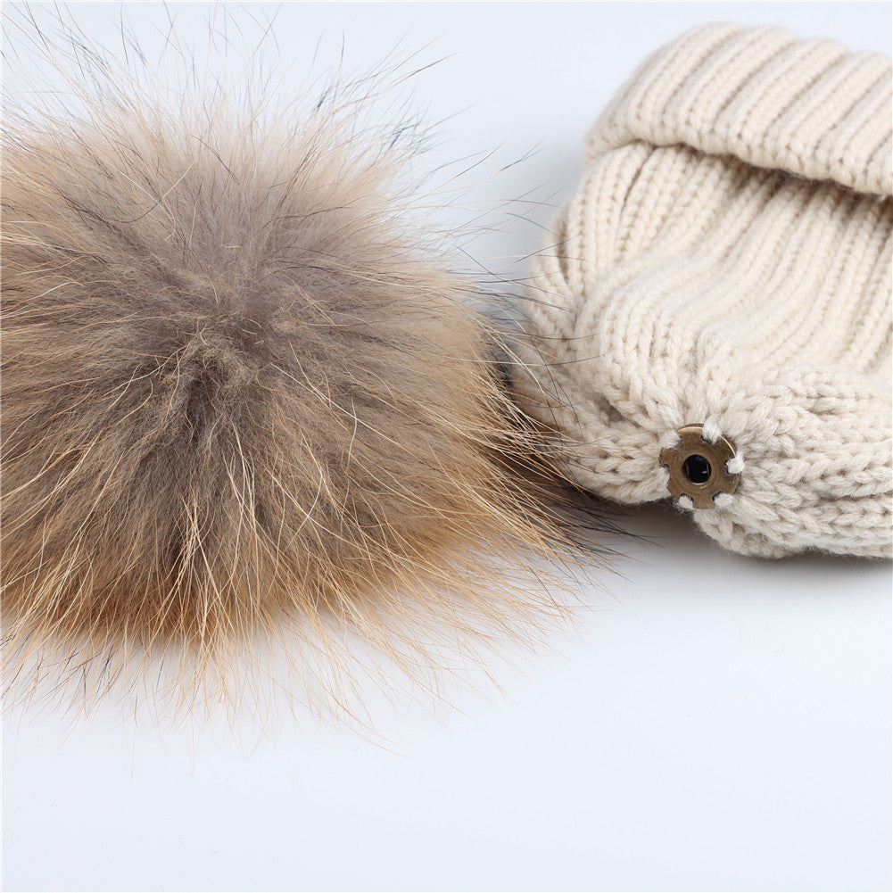 This cuffed pom beanie is knit in natural and colorful colors and with the Furtalk logo, and one detachable faux fur poms.